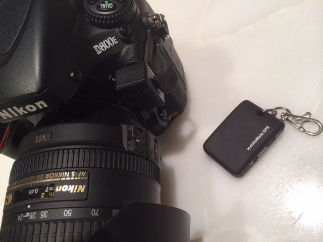 Above is an example of the Solmeta GPS connected to the D800E. You can see it’s a bit of a contraption! Also, on testing, this particular device seems to not work on the D800E.