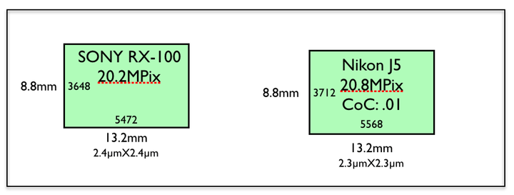 Sensor sizes for iPhone 7 Plus and Nikon J5/SONY RX100: