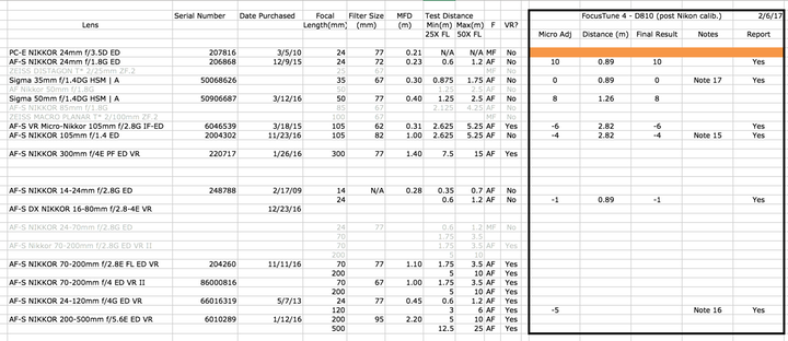 Since first looking at camera/lens calibration back in 2013, the need for accurate calibration has only increased. My interest in portrait photyography has led me to use more “fast” prime lenses. Right now, I have the following lenses in this category: