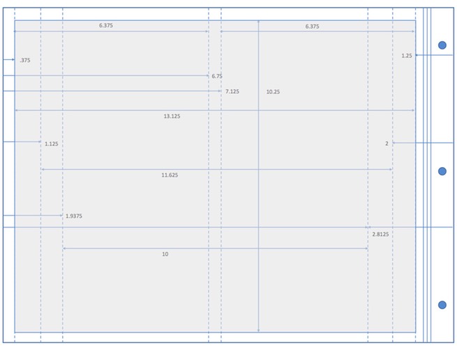 These dimensions are crucial in placing the images accurately on the page. Also for the reverse side the dimensions would be a mirror image of the page above.