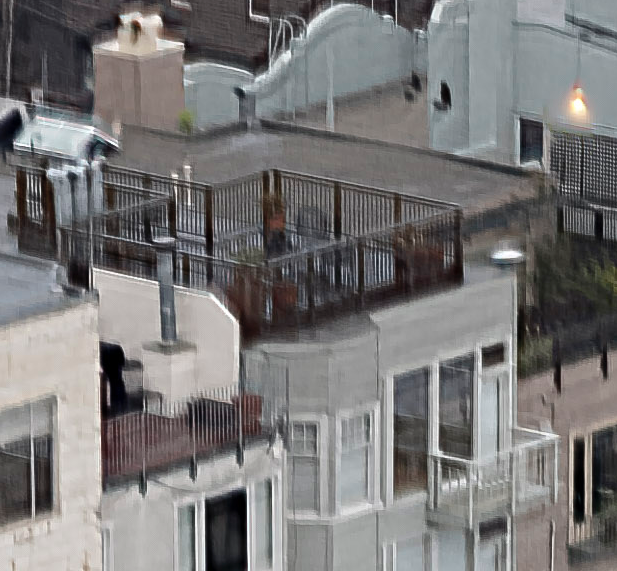 It’s hard to tell which on is better. The PS rendering has more detail but also more artifacts. Neither is very satisfactory compared to the non-blurred version. Remember, however, these are crops from a 42MPix image so most of these artifacts won’t be visible unless the image is significantly magnified.