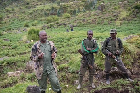 Here's the deal. The gorillas live in remote jungle high up in the mountains, around 10,000 feet. We traveled to a reception center where we were broken into small groups of 8 and met with our respective guides who briefed us on what to expect. We were assigned a particular, unique, family and we were assured we would see gorillas. By 8am we were trekking up a very steep mountain through farmland, met by cheering kids (crazy Americans!!). After about a mile and a half of breathless climbing we were informed we would be entering the forest where we would see the animals. We were met by trackers who spend there lives up there tracking the daily location of the gorilla families. They looked serious.