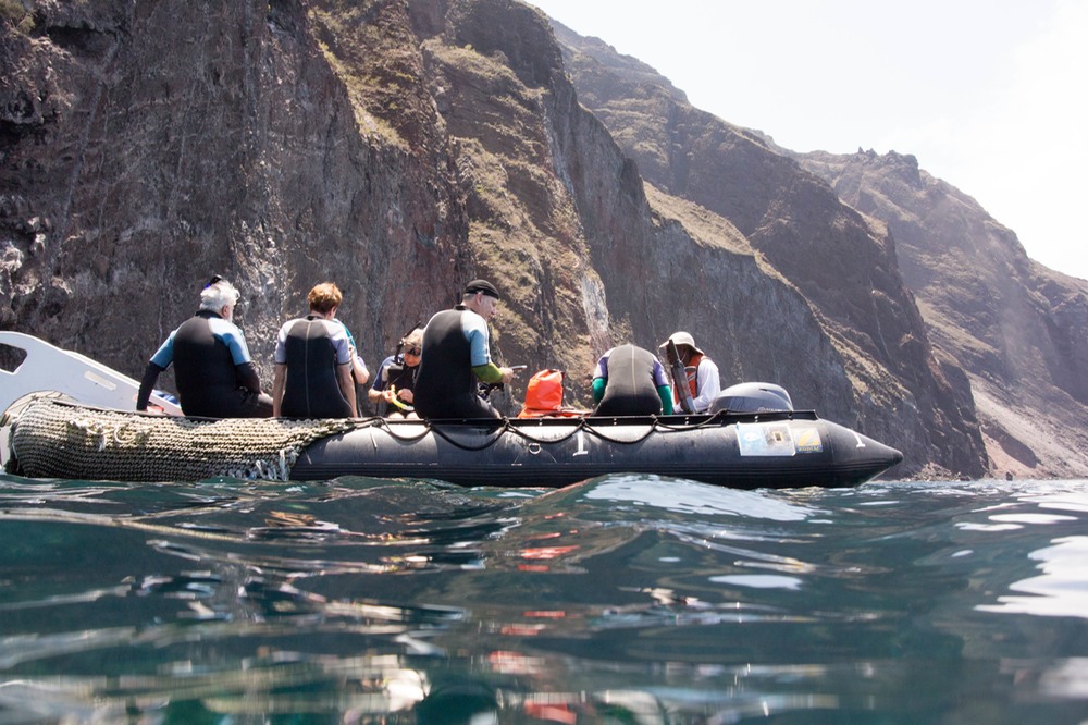 Tuesday April 8. After the crosiing the Equator ceremony, we arrived at Isabela Island, at Punta Vicente Roca, right on the north East tip of the island. We took a fun Zodiac cruise to check out the wird life.