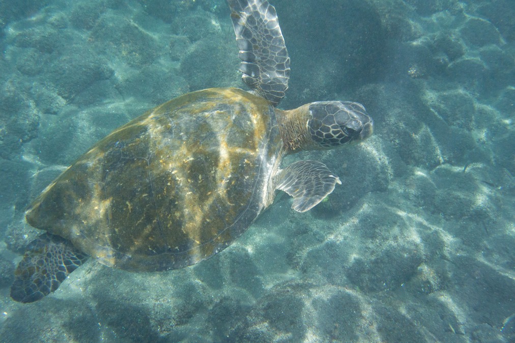 Like everything else in the Gala[agos, they were friendly, almost oblivious to our presence, gracefully swimming along. Ocassionaly they would come up fpr air.