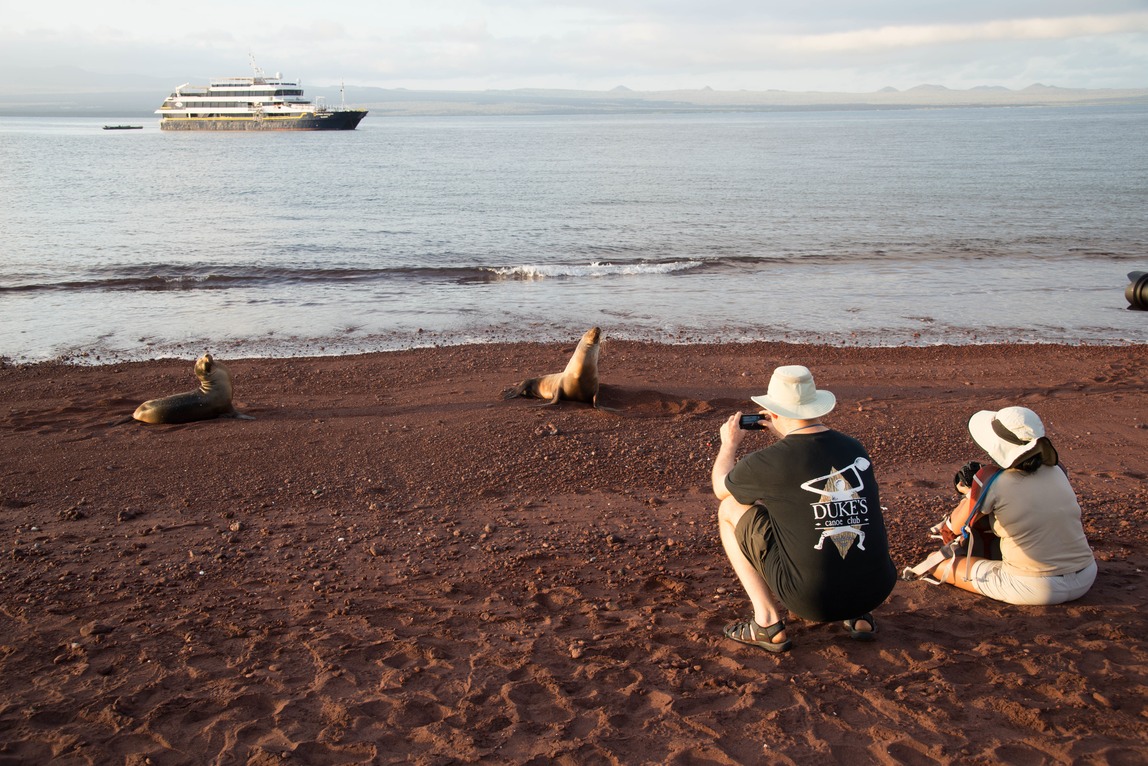 April 7. During lunch we set sail for Rabida Island. Just south of Santa Cruz Island. We went on this really nice beach to watch the sunset. Really nice light and very friendly seals.