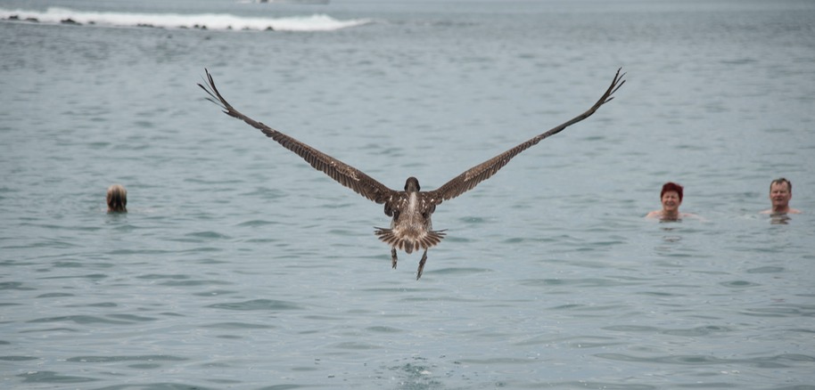 But the main event was a show put on by a (hungry) and talented Pellican who was hanging around on our arrival delighting swimmers in the bay.