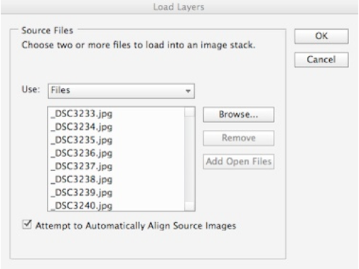 5.Select Files and make sure “Attempt to Automatically Align Source Images” is checked
