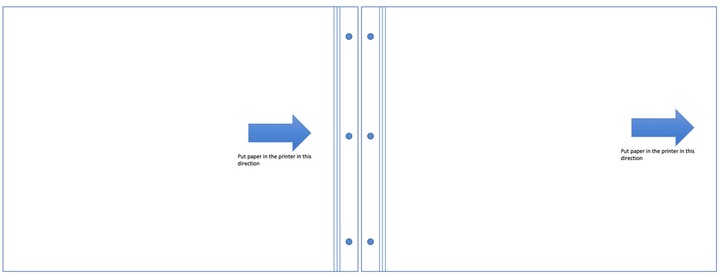 1. With double-sided printing, on scored paper, it's important to put the paper in the printer in the correct orientation depending on whether the image is to be printed on the front or the back of the page.