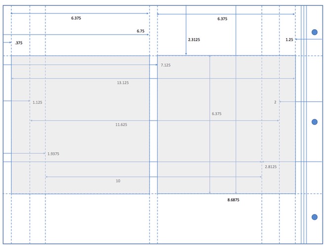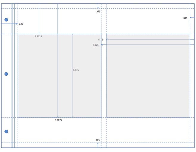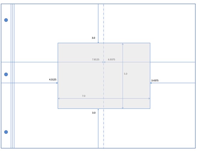 These dimensions are crucial in placing the images accurately on the page. Also for the reverse side the dimensions would be a mirror image of the page above.